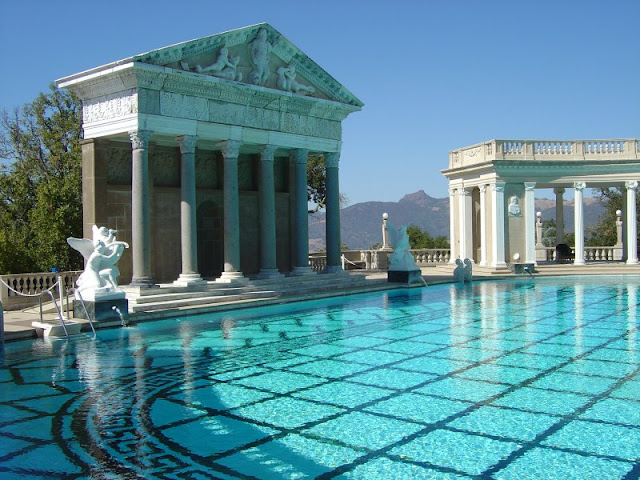 Inspired by the baths of ancient Rome, here's the extraordinary Hearst Castle pool, California, consisting of priceless mosaics, statues and sought-after marbles of all kinds. If you are curious to discover it live to know that it is open to public tours.